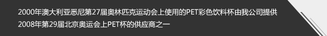 1994年公司從美國、瑞士引進當時最先進的生產PET產品流水線,正式開始專業(yè)生產PET系列產品。通過20多年的不斷探索和發(fā)展,市場遍布五大洲六十多個國家和地區(qū),與世界很多知名企業(yè)和品牌建立了友好合作,,如星巴克、DQ、迪士尼、農夫山泉、蒙牛、百威啤酒等。公司現有若干條流水線,幾十臺各類生產機組,年生產能力可達12億套以上,形成了完整的集設計、制造、生產、銷售與服務為一體的專業(yè)運行體系。